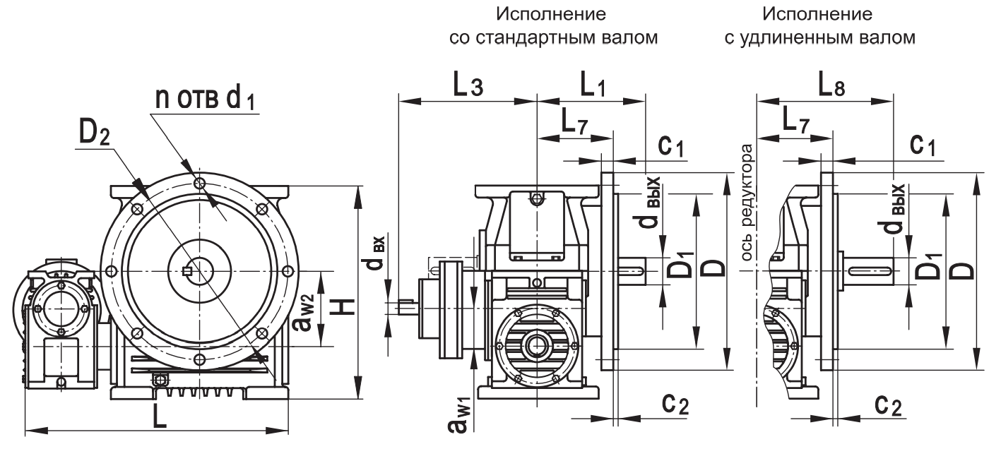 Типоразмер аW1 аW2 D D1 D2 H L* L1 L2max L3 L4 L8 с1 с2 d1 dвх dвых n