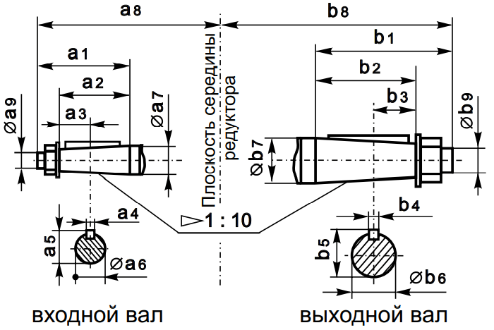 • Цвых – Цилиндрический выходной вал;